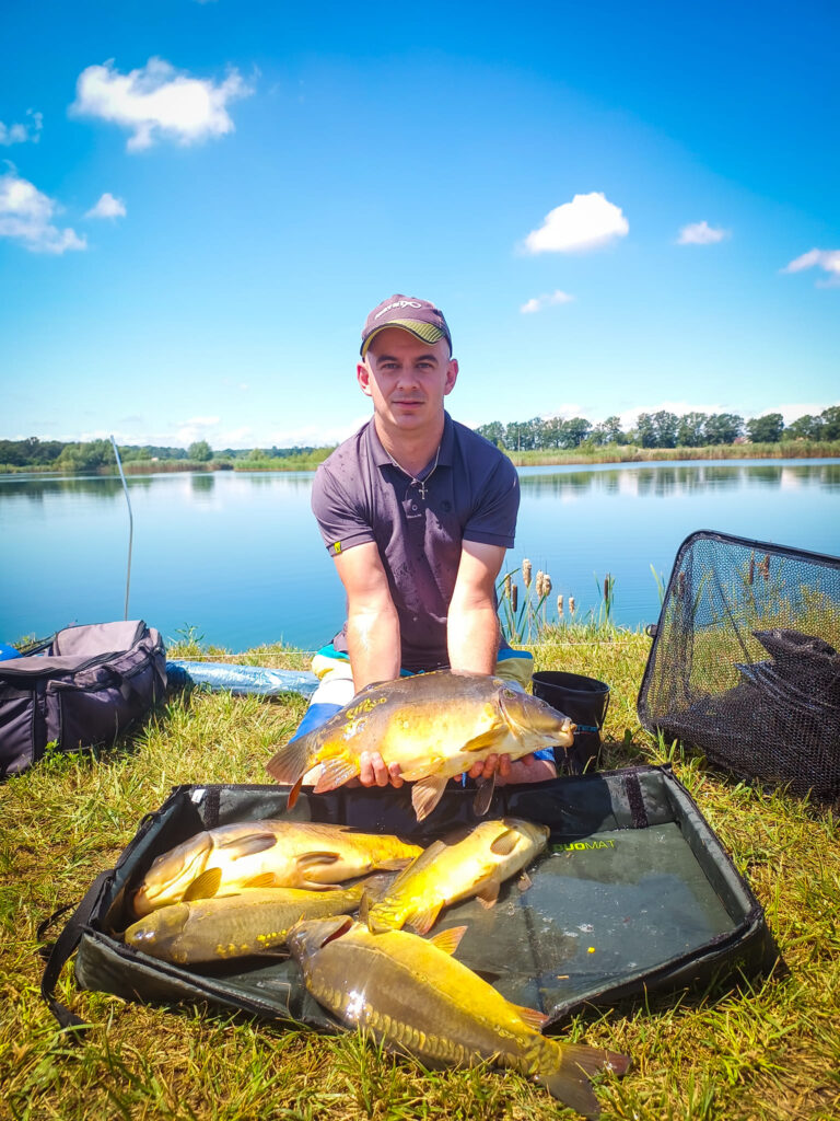 Mateusz swoją przygodę z wędkarstwem rozpoczął już w dzieciństwie. Przez wiele lat był związany ze spławikiem, w którym zdobywał doświadczenie startując w licznych zawodach — zarówno lokalnych, jak i ogólnopolskich. Po blisko ośmiu latach przeniósł się na klasyczny feeder, który do dziś jest jego główną metodą. Podobnie jak jego wspólnik, lubi urozmaicenie — chętnie sięga po method feeder oraz spinning, eksplorując rzeki Kotliny Kłodzkiej. Do jego największych osiągnięć należą starty w Grand Prix Polski, tytuł Mistrza Okręgu, udział w Mistrzostwach Polski, a także liczne zwycięstwa w zawodach komercyjnych.