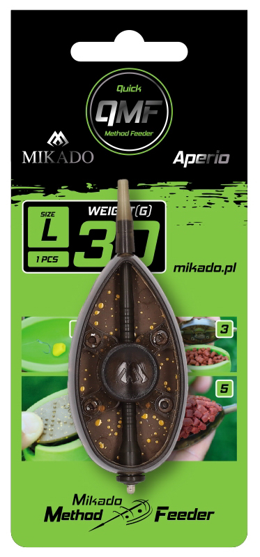 Ewolucja świetnych koszyków Method Feeder Aperio. Q.M.F. to system pozwalający w szybki i łatwy sposób wymienić podajnik bez konieczności rozbrajania całego zestawu. Wystaczy zdjąć gumową tulejkę, zsunąć koszyk z trzpienia i zamienić go innym modelem.